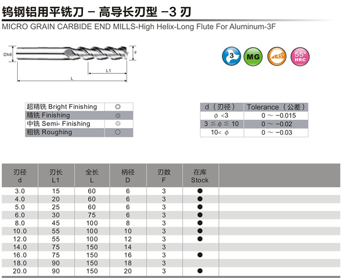 鎢鋼鋁用平銑刀-高導(dǎo)長刃型-3刃