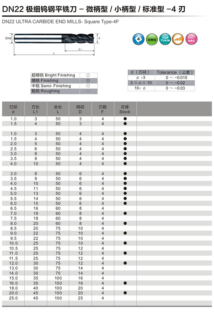 DN22極細(xì)鎢鋼平銑刀-微柄型/小柄型/標(biāo)準(zhǔn)型-4刃