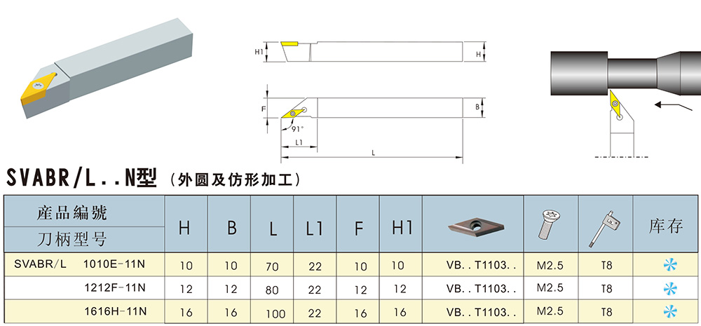 外圓車削刀桿SVABR/L..N型